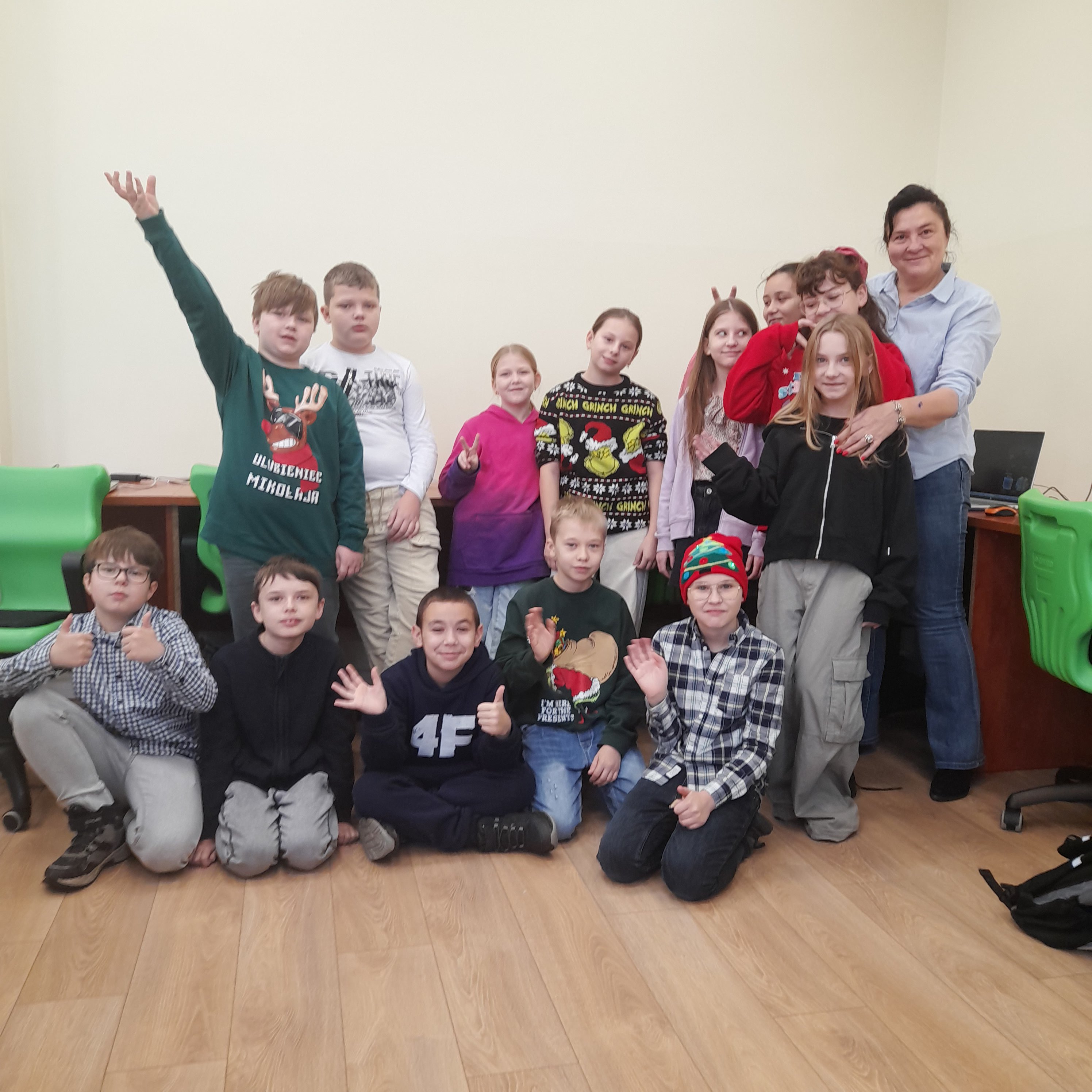 W tym roku św. Mikołaj był szczególnie łaskawy dla naszej pracowni informatyki. Co prawda na zdjęciach nie ma jeszcze całego nowego wyposażenia, ale po Nowym Roku będzie już komplet. Na tę chwilę nasza wigilia klasowa 4b odbyła się w anturażu nowych laptopów, świeżo malowanych ścian, nowej podłogi, które to oświetlają odpowiednio dobrane lampy. Już jest pięknie, a będzie jeszcze piękniej! Dzieci z klasy 4b wraz z wychowawczynią i opiekunką pracowni panią Ireną Dominiak w pełnej radości świątecznej atmosferze, staropolskim zwyczajem, łamali się opłatkiem i życzyli sobie nawzajem WESOŁYCH ŚWIĄT!