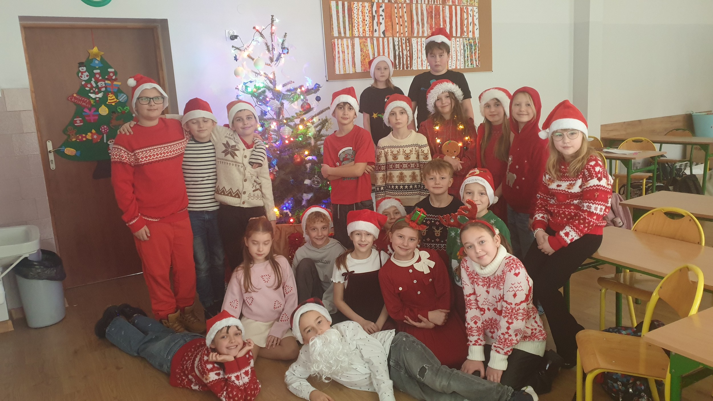 Klasa 5a poczuła magię świąt podczas klasowych Mikołajek. Pierwszym punktem programu było wspólne robienie wyjątkowej i jedynej w swoim rodzaju choinki z życzeniami. Jak co roku nie obyło się bez Mikołaja i jego pomocników, którzy sprawnie wręczyli prezenty. Na koniec zrobiliśmy kilka pamiątkowych zdjęć i ogłaszamy, że już nie możemy się doczekać nadchodzących świąt i zaczynamy wielkie odliczanie.