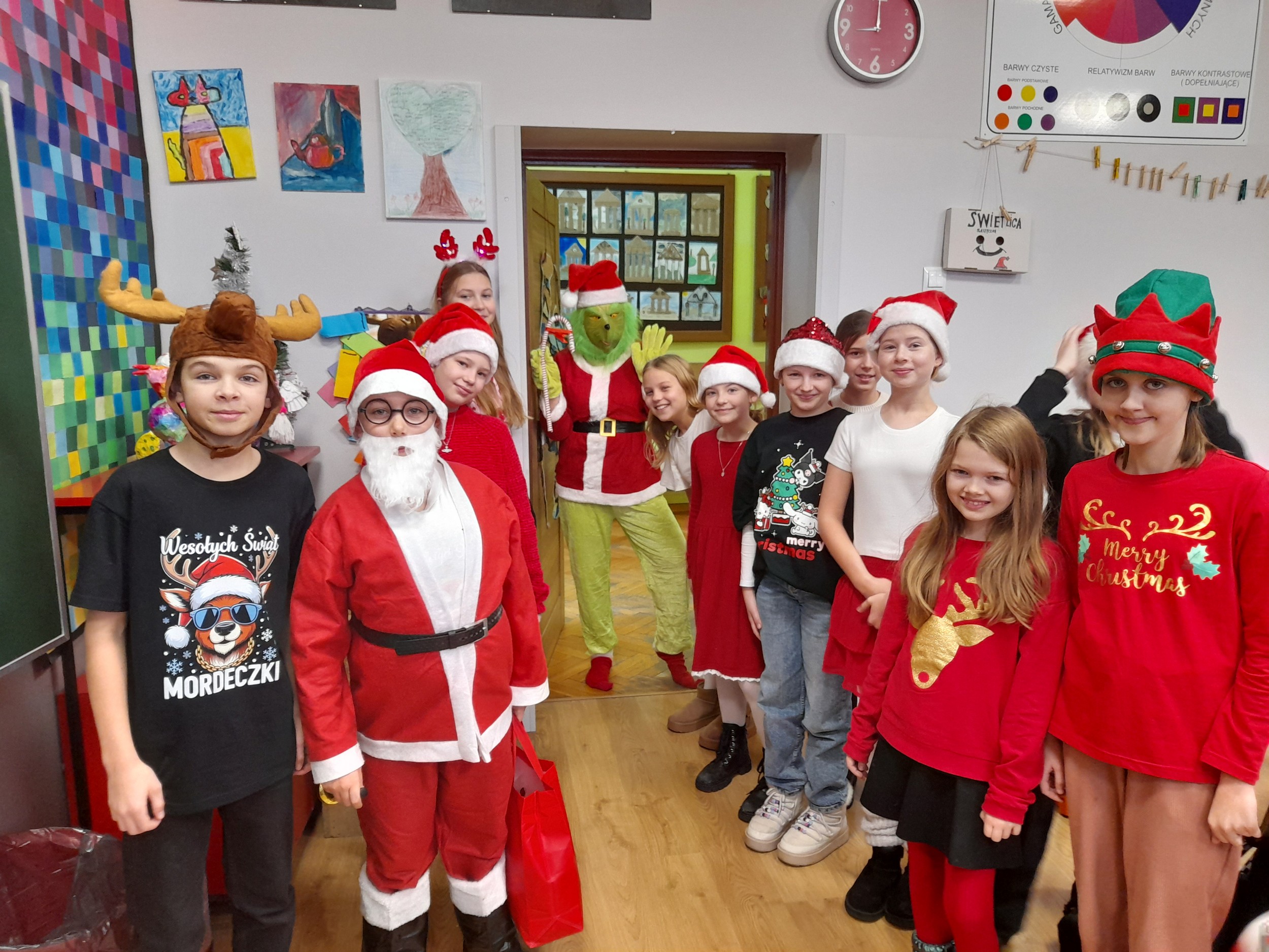 W szkole pojawił się nawet Grinch, który – mimo swojej słynnej niechęci do świąt – świetnie zabawiał uczniów, wprowadzając wszystkich w jeszcze lepszy nastrój.