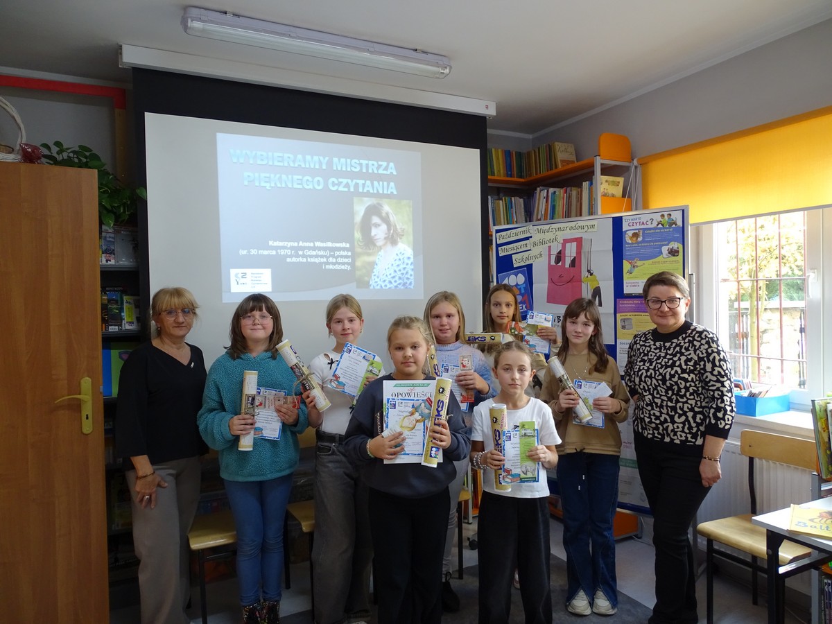 16 października 2025 r. w bibliotece Szkoły Podstawowej nr 1 odbył się szkolny etap powiatowego Konkursu czytelniczego ph. „Wybieramy Mistrza Pięknego Czytania”. Do konkursu przystąpiło siedmioro czwartoklasistów. W tegorocznej edycji konkursu na uczestników czekały teksty pisarki książek dla dzieci i młodzieży Katarzyny Wasilkowskiej. Każda edycja powiatowego Konkursu jest organizowana w oparciu o twórczość innego pisarza. Stwarza to świetną okazję do poznawania twórczości różnych pisarzy.