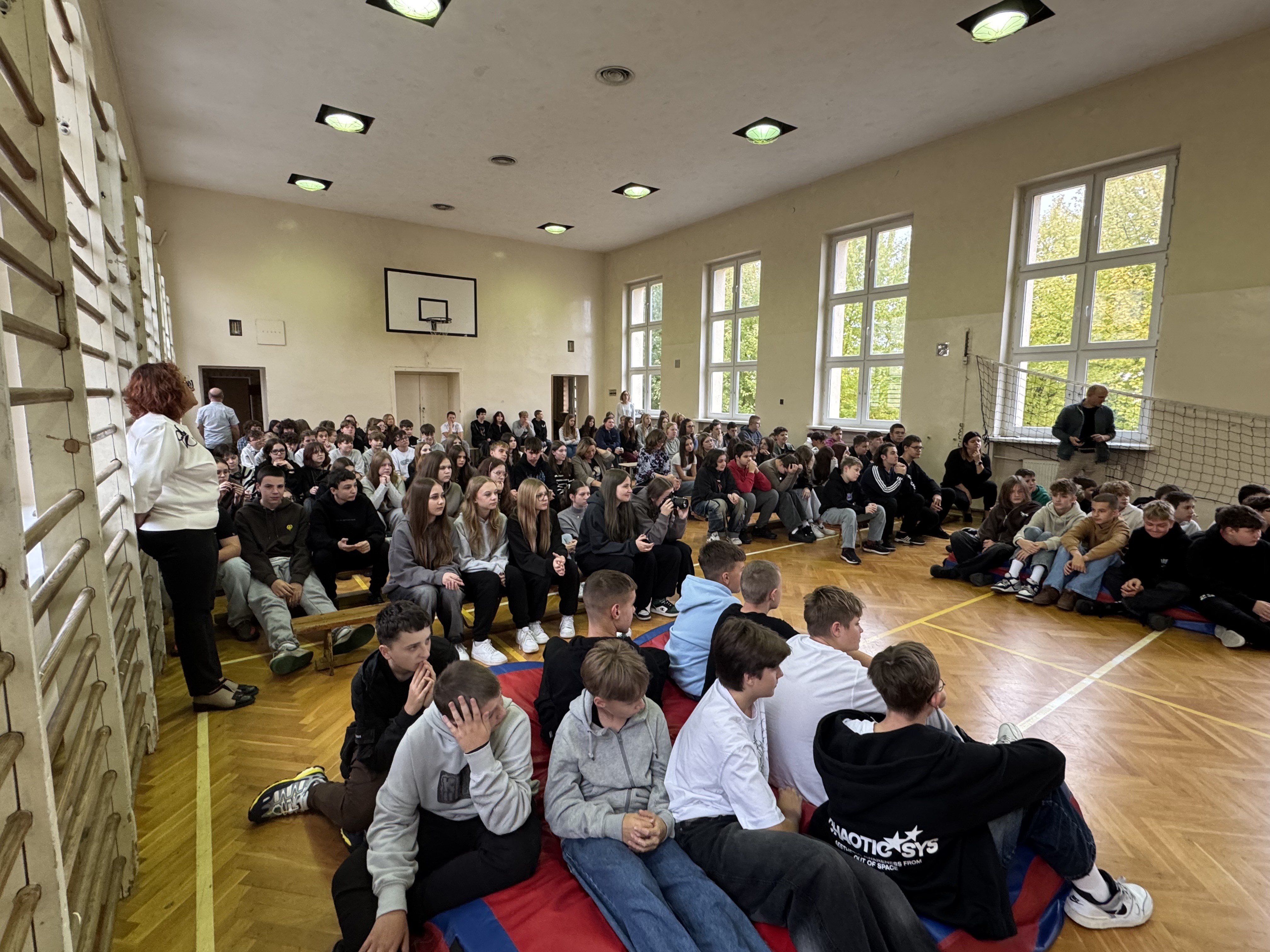 9 października br. w klasach 1a, 1b, 2c oraz 3b odbyła się wyjątkowa lekcja WF w ramach lekcji z Mistrzem z Programu Mały Mistrz. Trener akrobatyki Pan Sebastian Tołkacz poprowadził zajęcia pełne przewrotów, stania na rękach, rozciągania i pracy zespołowej. Zajęcia były ciekawe, dynamiczne i pełne ruchu. Uczniowie bawili się świetnie, ucząc się równowagi, siły i odwagi. Chętnie uczyli się nowych umiejętności w bezpieczny i kontrolowany sposób.